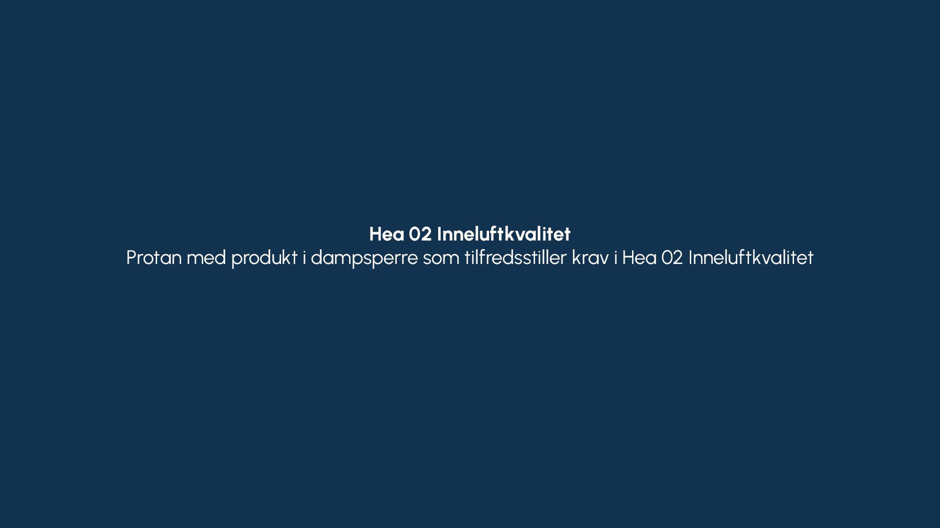 Protan med produkt i dampsperre som tilfredsstiller krav i Hea 02 Inneluftkvalitet.